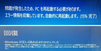 windows10では左上に大きく「回復」と表示されるブルースクリーンや、「recovery」と表示されるブルースクリーンが多くなりました。